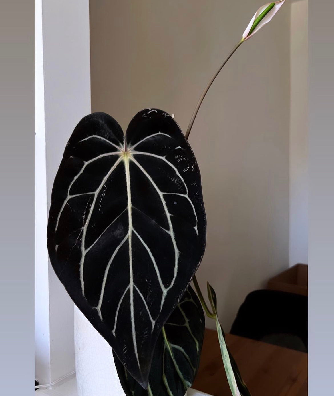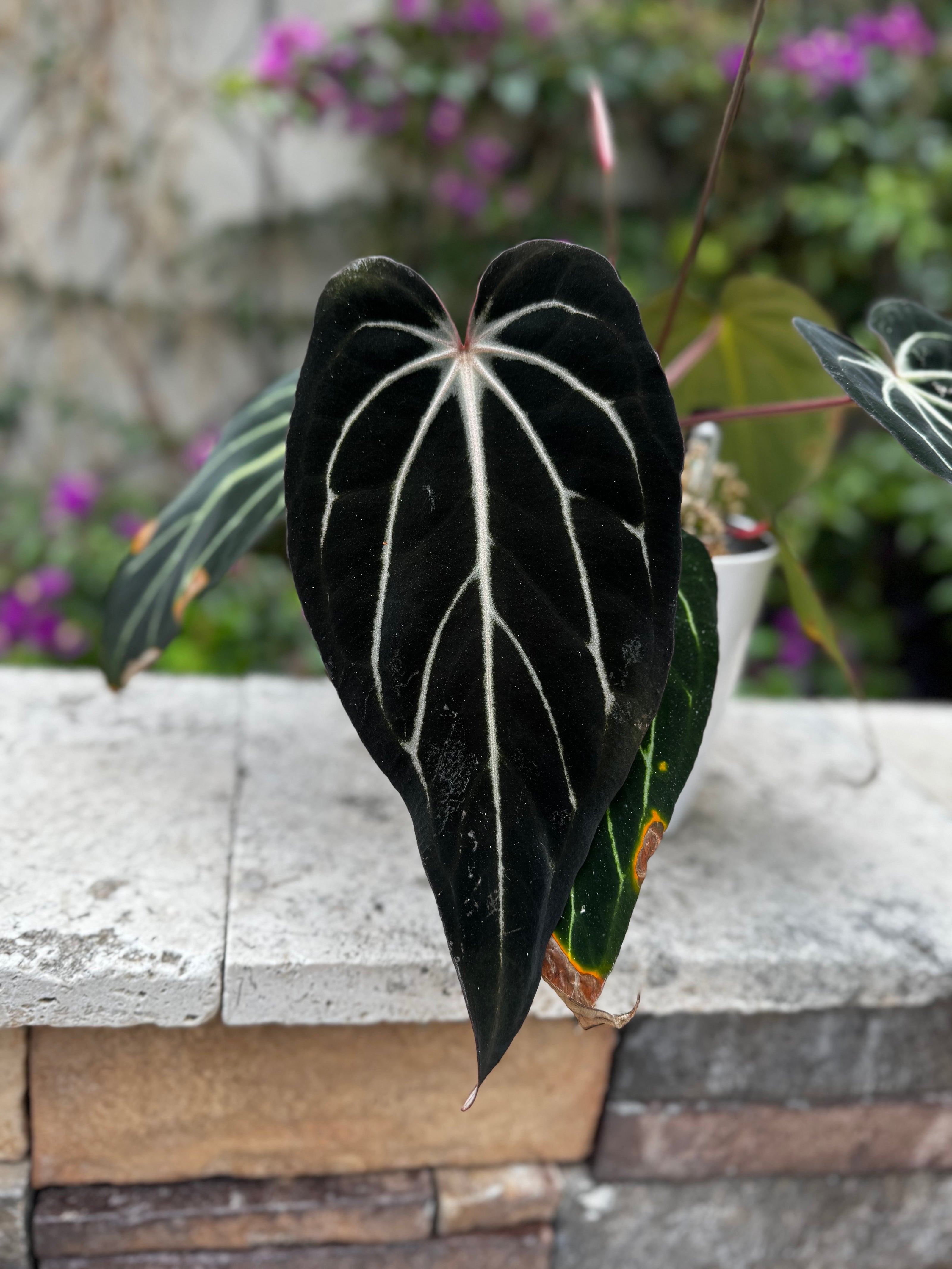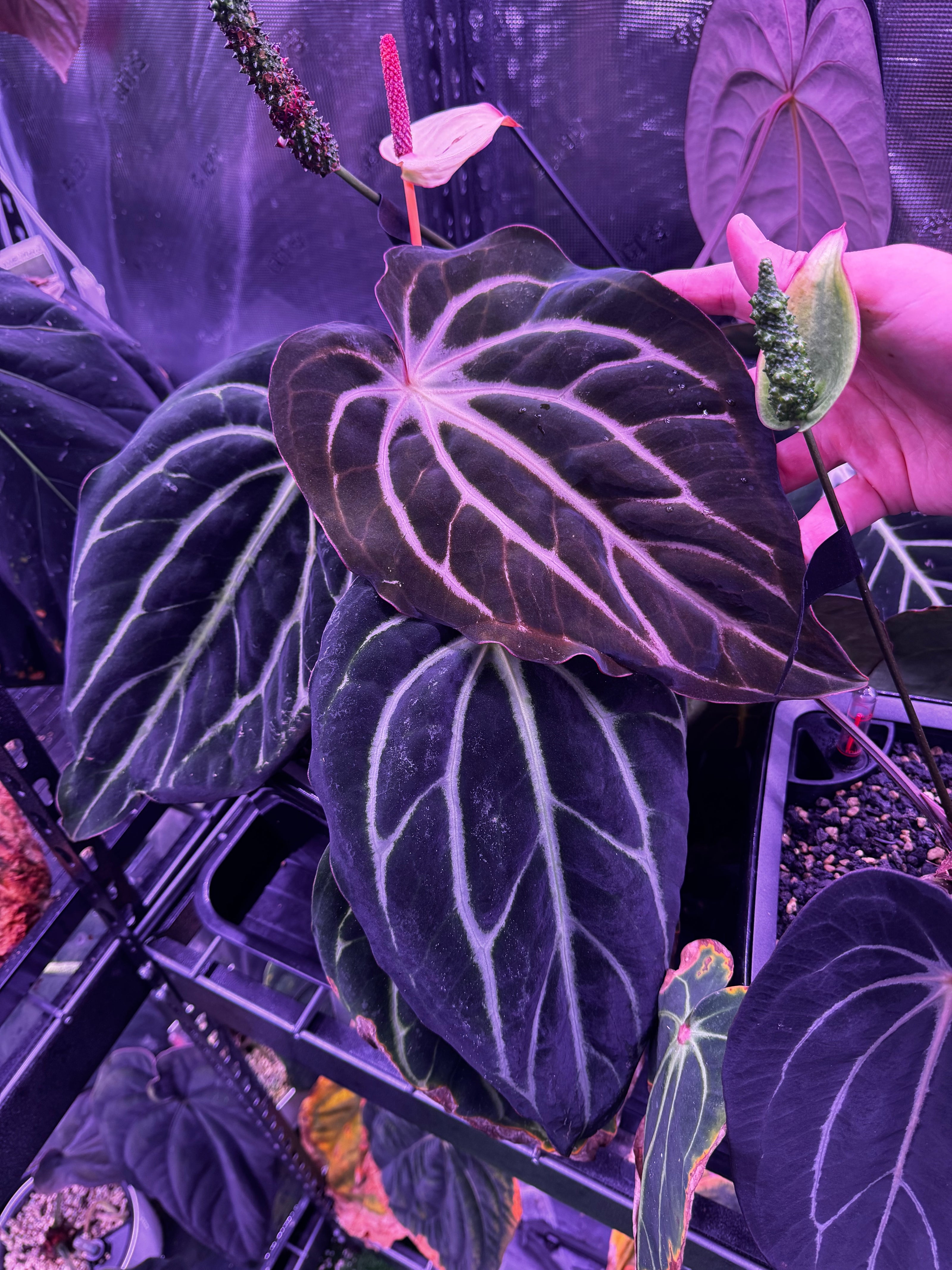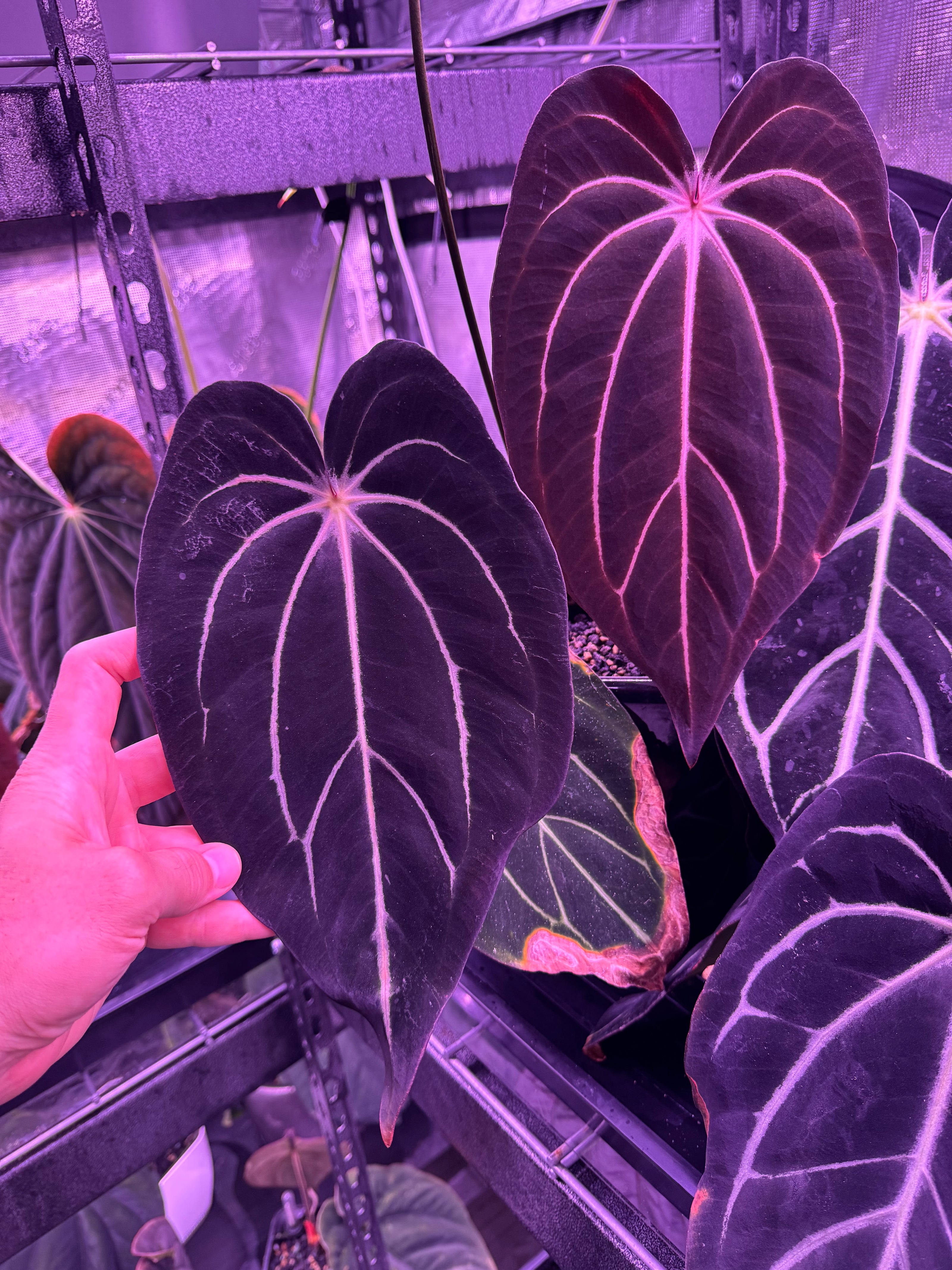 The famous plant originally grown by my friend Juan (@gayplantheaux). This is one of the earliest carlablackiae plants offered by Rory Antolak in the states belonging to a group of plants often referred to as "unnumbered clones" which are likely largely comprised of wild collected seed that were then grown out in the States. This plant has stunning black velvet foliage with a very unique vein pattern with incredibly vibrant neon pink emergent veins.